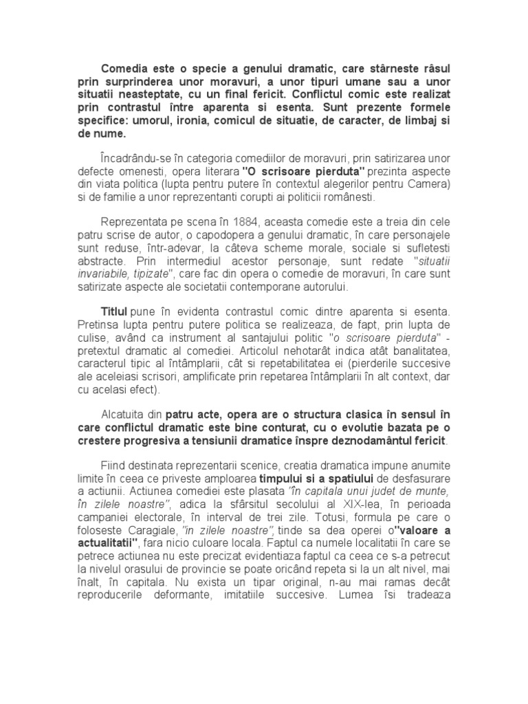 Caragiale O Scrisoare Pierdută Comentariu