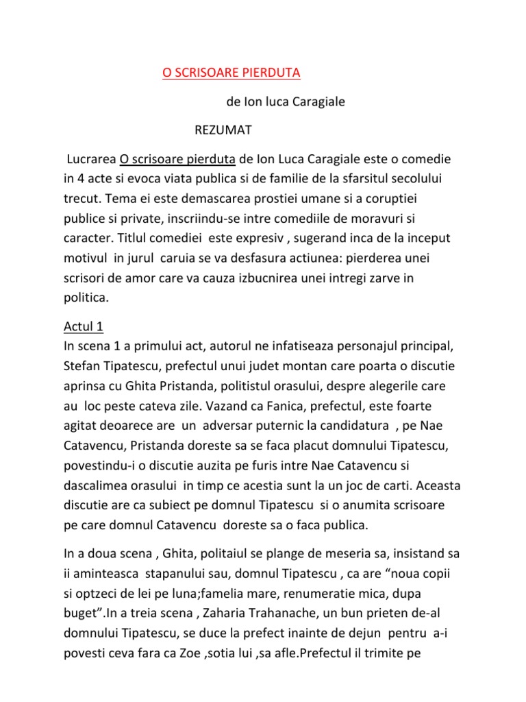 Rezumat O Scrisoare Pierduta Fragment Manual