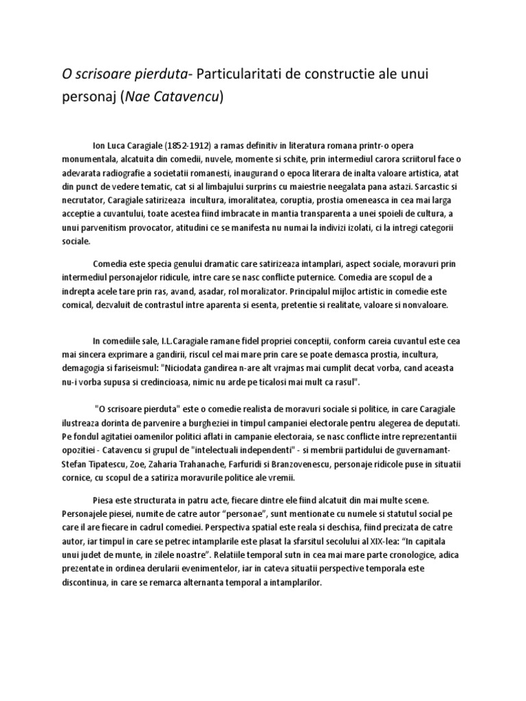 Caracterizare Caracterizare Pe Personaj O Scrisoare Pierduta
